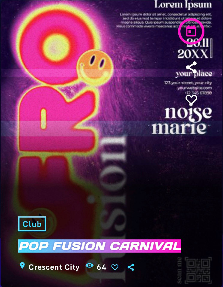 Organiza y promociona eventos en vivo, festivales o shows en línea. Cada evento puede incluir fecha, ubicación, enlaces para boletos, y mapa.