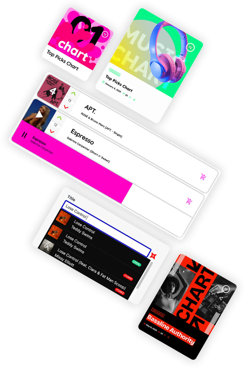 Crea listas ilimitadas. Genera automáticamente las listas de canciones más populares a partir de las estadísticas de reproducción de Sidekick o de una selección manual. Con sistema de votación.