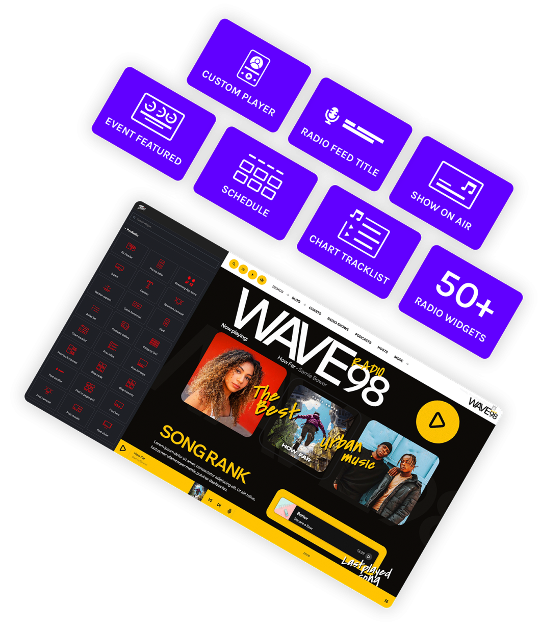 Deja de luchar con plugins, temas y código. Convierte tu sitio web en una potente emisora de radio con todas las funciones, diseñada para atraer a los oyentes, aumentar tu audiencia y facilitar la emisión.