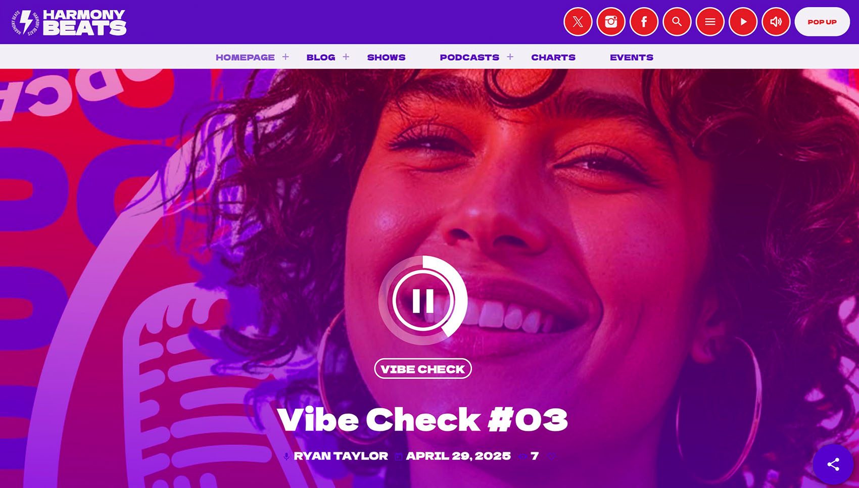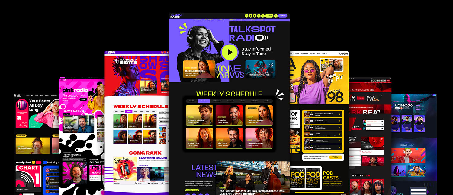 Edita una de las 43 plantillas de página de radio listas para importar y comienza la página web de tu radio al instante.