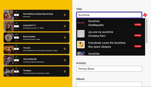 Crea classifiche illimitate. Genera automaticamente le classifiche dei brani top dalle statistiche di riproduzione di Sidekick o selezione manuale. Con sistema di votazione.