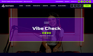 Nextgen è un innovativo modello per siti radio costruito per radio di musica techno, EDM, underground ed elettronica. Con un design scuro e atmosferico e potenti funzionalità di trasmissione, Nextgen dà alla tua presenza web il vibe che il tuo pubblico si aspetta: audace, immersivo e pronto per il futuro della webradio.