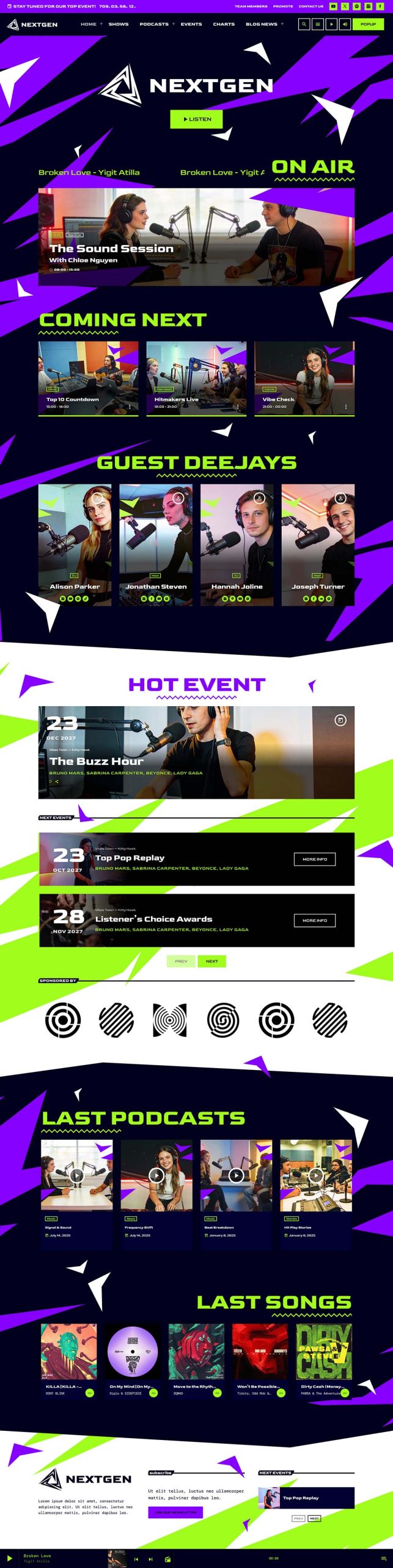 Che tu gestisca una stazione radio internet locale, un canale techno underground, o un hub di comunità EDM, Nextgen si adatta alle tue esigenze. È più di un modello per siti radio — è un completo costruttore di siti radio progettato per creatori che vogliono avere un impatto.