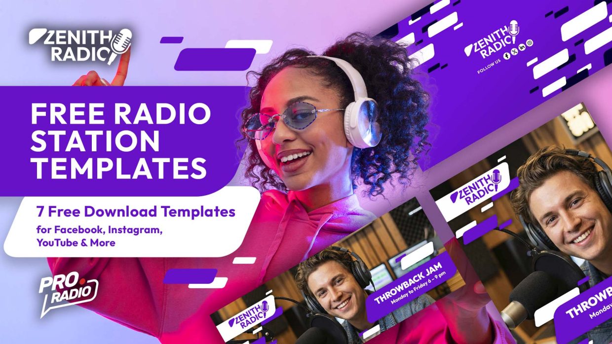 Create a powerful radio brand and an unified brand experience across your entire digital presence with this new pack of free radio social media templates, designed to match your social media to your new radio website.