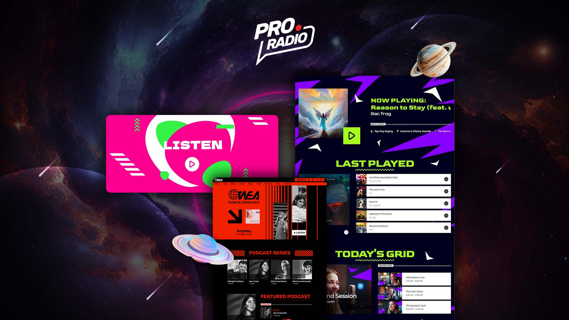 - Pro Radio Plus — everything in one plan: theme, player, shows, podcasts, templates, and all premium add-ons