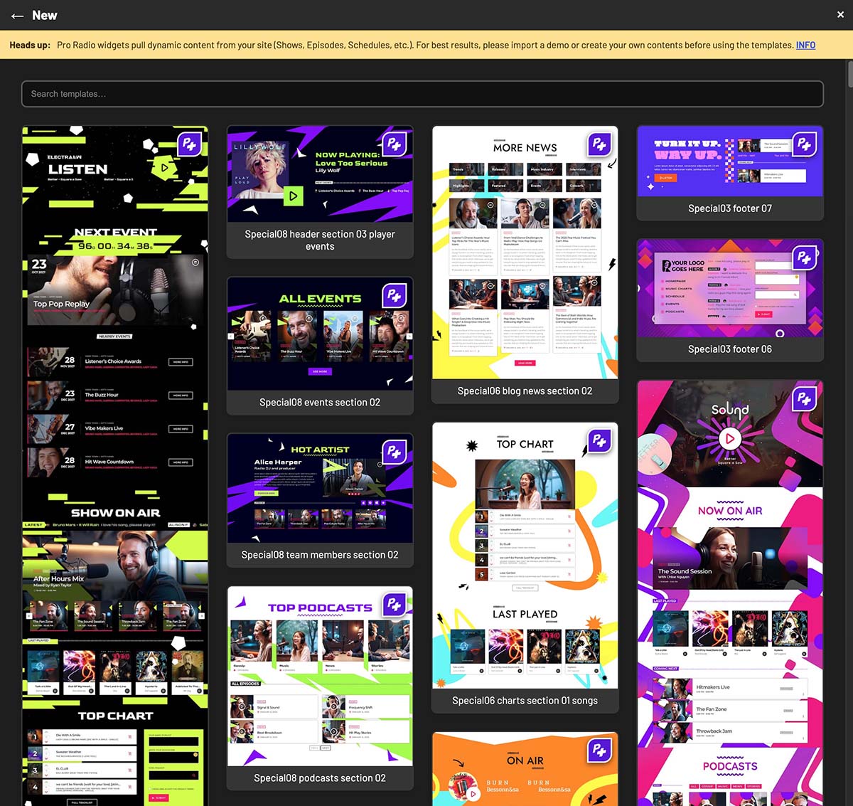 Plus gives you access to an exclusive library of Elementor templates that can be installed directly on any existing Pro Radio website. Whether you want to refresh your homepage, create new podcast pages, or launch a new radio station project, these templates let you do it all in a few clicks.