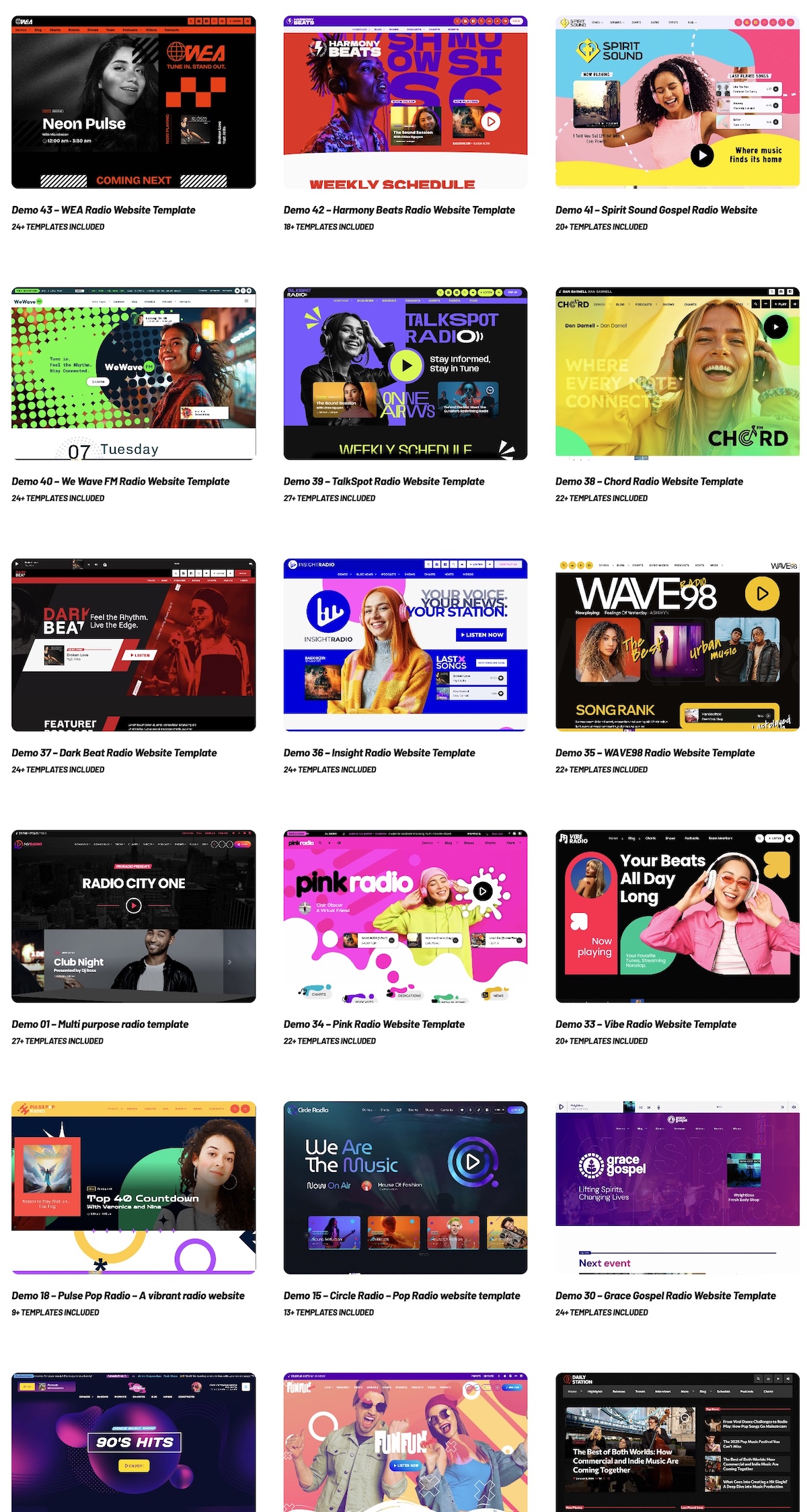 Choose among 40+ prebuilt radio websites! All demos are included.