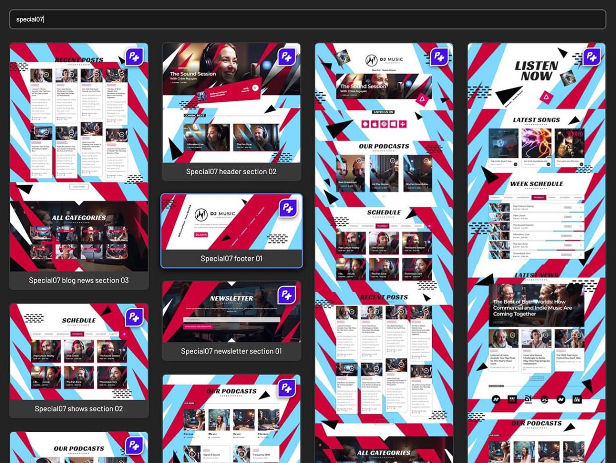 These radio website templates are available only with the Pro Radio Plus license. Each layout is ready-to-import with Elementor and includes all the tools you need for your internet radio station website: non-stop music player, Sidekick radio management assistant, Charts, Podcasts, Events, Podcast Importer, Dedications feature, and more!