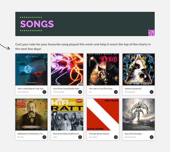 - Song voting grid, powered by our Pro Radio Sidekick tool to engage your listeners with constant interaction