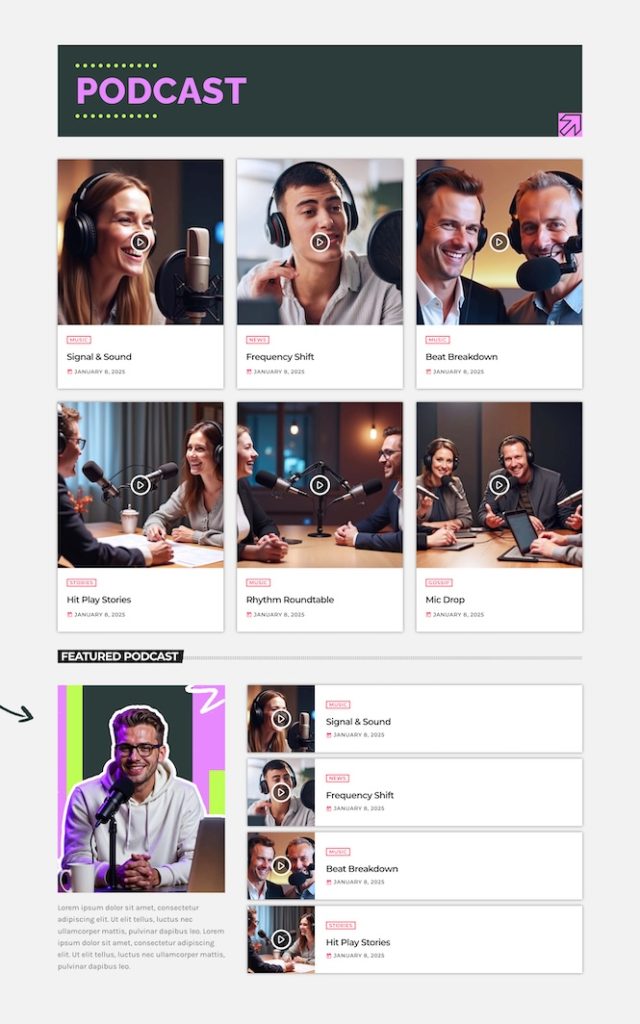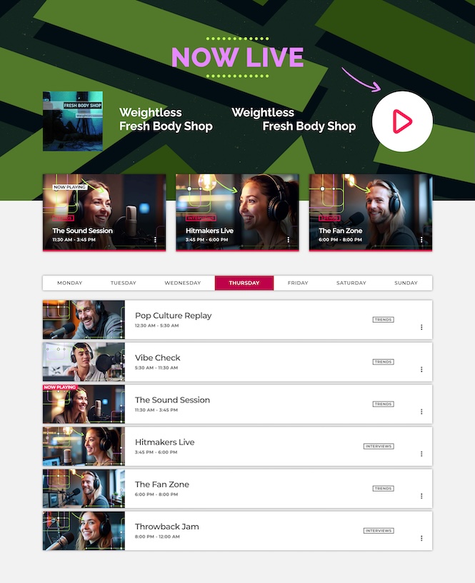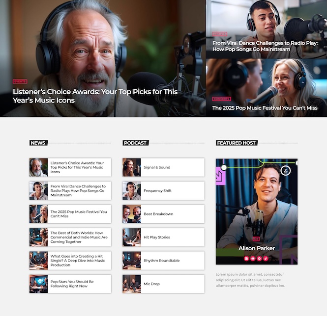 Your station deserves a website that highlights breaking news, engaging podcasts, and interactive music features. With the new exclusive templates included in Pro Radio Plus, you can give your audience a dynamic online hub that feels modern, professional, and ready for growth. Inspired by bold layouts and vibrant colors, these designs are made to stand out.