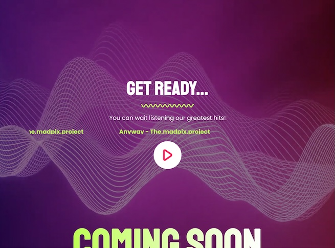This coming soon page template is stylish and functional — with a background animation and your music streaming player to announce your official launch.