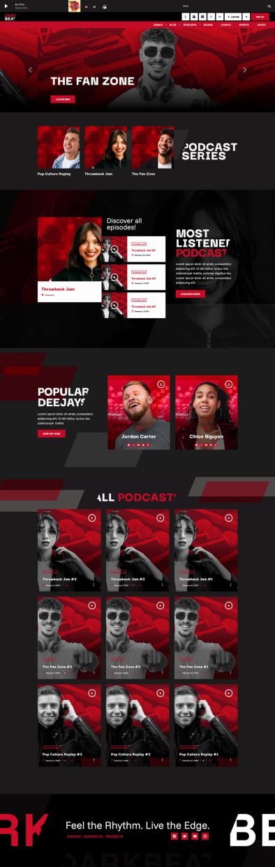 A dedicated podcast page in a professional and elegant look, created to promote your podcast series and individual episodes. Ideal for radio stations investing in podcasting, this template helps you organize shows, episode details, and listening options in a clean and professional layout.
