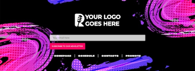 This cool footer gives your site a professional finish while improving conversions. Features a prominent logo, an easy newsletter subscription form, and space for important site links (homepage, schedule, contacts, promote). A tidy, user-friendly footer that helps you capture emails and keep navigation tight across your internet radio station website.