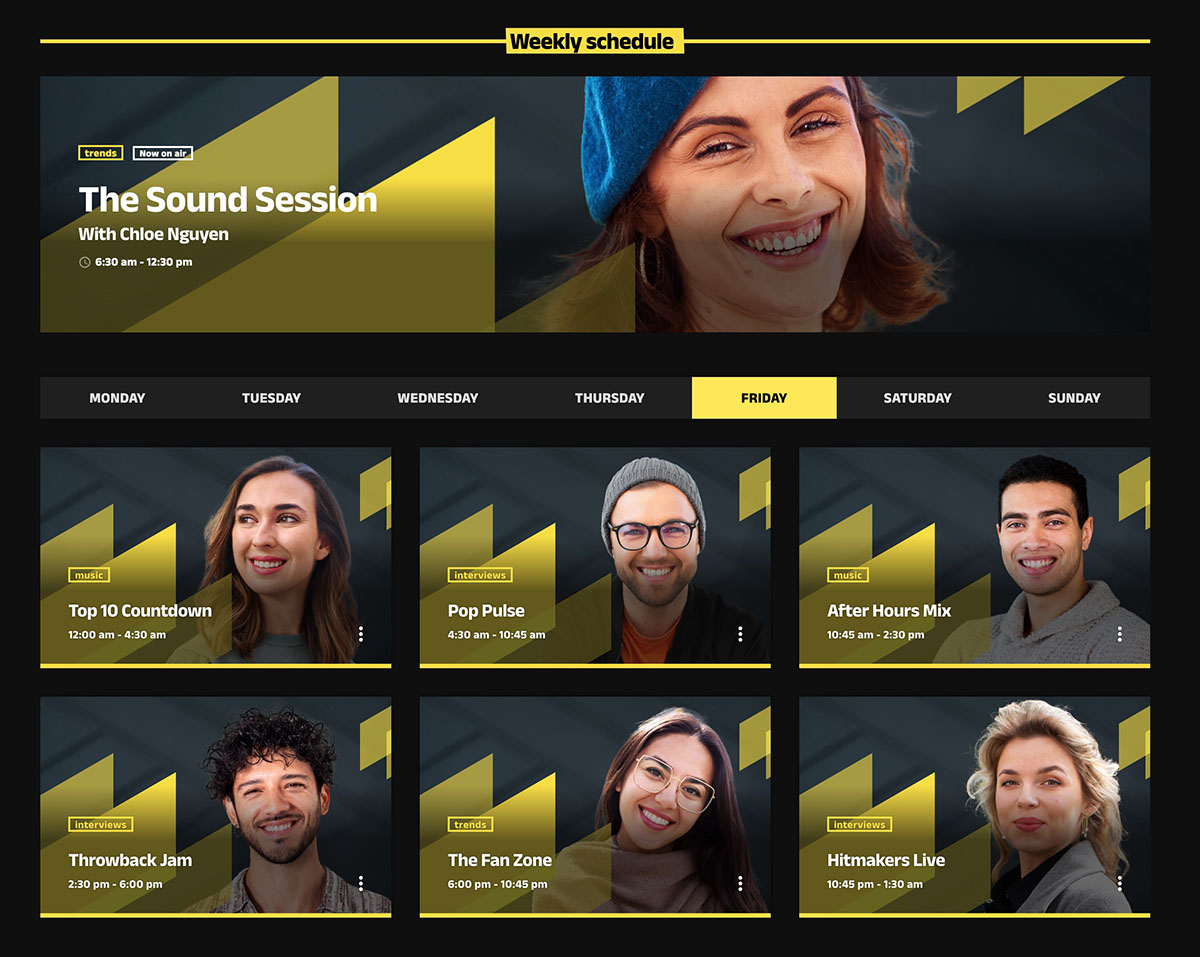It’s ideal for stations that want to deliver a visually engaging experience while keeping content organized and easy to navigate.