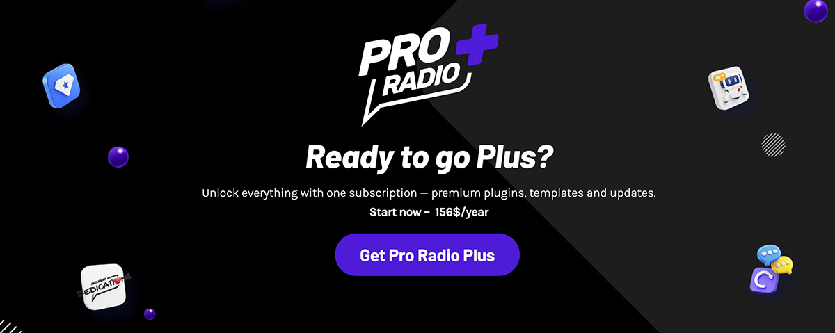 And because this is part of Pro Radio Plus, you get access to all Pro Radio premium plugins included — no extra purchases, no limitations.