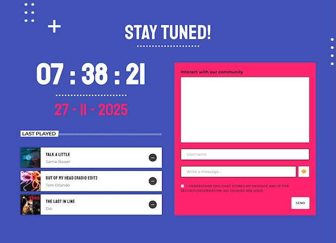 Radio is about connection. The integrated chat system allows real-time interaction with your audience — perfect for shoutouts, requests, and community building.
