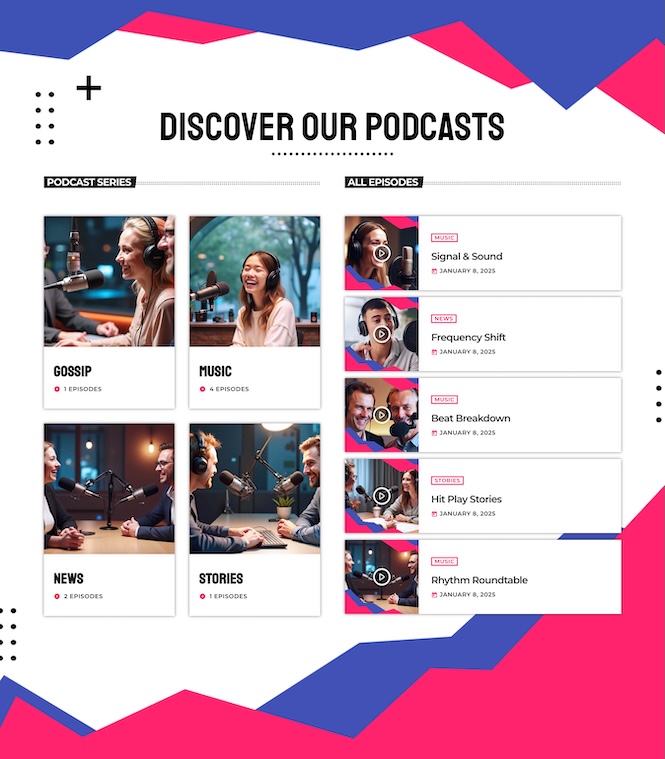 Right after the hero, visitors see what’s coming up next. This keeps listeners on your site longer and increases retention.