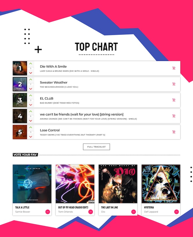 Show your station’s hottest tracks. This increases engagement and positions your brand as a music authority.