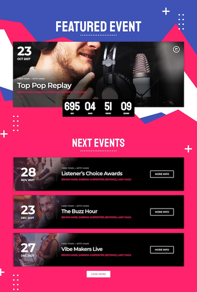 Events are a key revenue and branding channel for modern radio stations. This layout makes them impossible to miss.