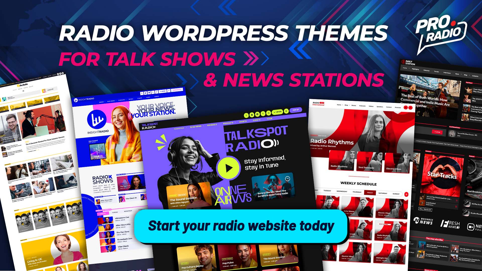 Looking to launch a professional podcast, talk radio station, or news broadcasting platform? These podcast-ready radio website templates are built for stations that focus on interviews, discussions, talk shows, and breaking news. With Pro Radio WordPress Theme, you can easily create a modern and fully-featured online hub for your talk show content, combining streaming, podcasting, and broadcasting in one powerful solution.