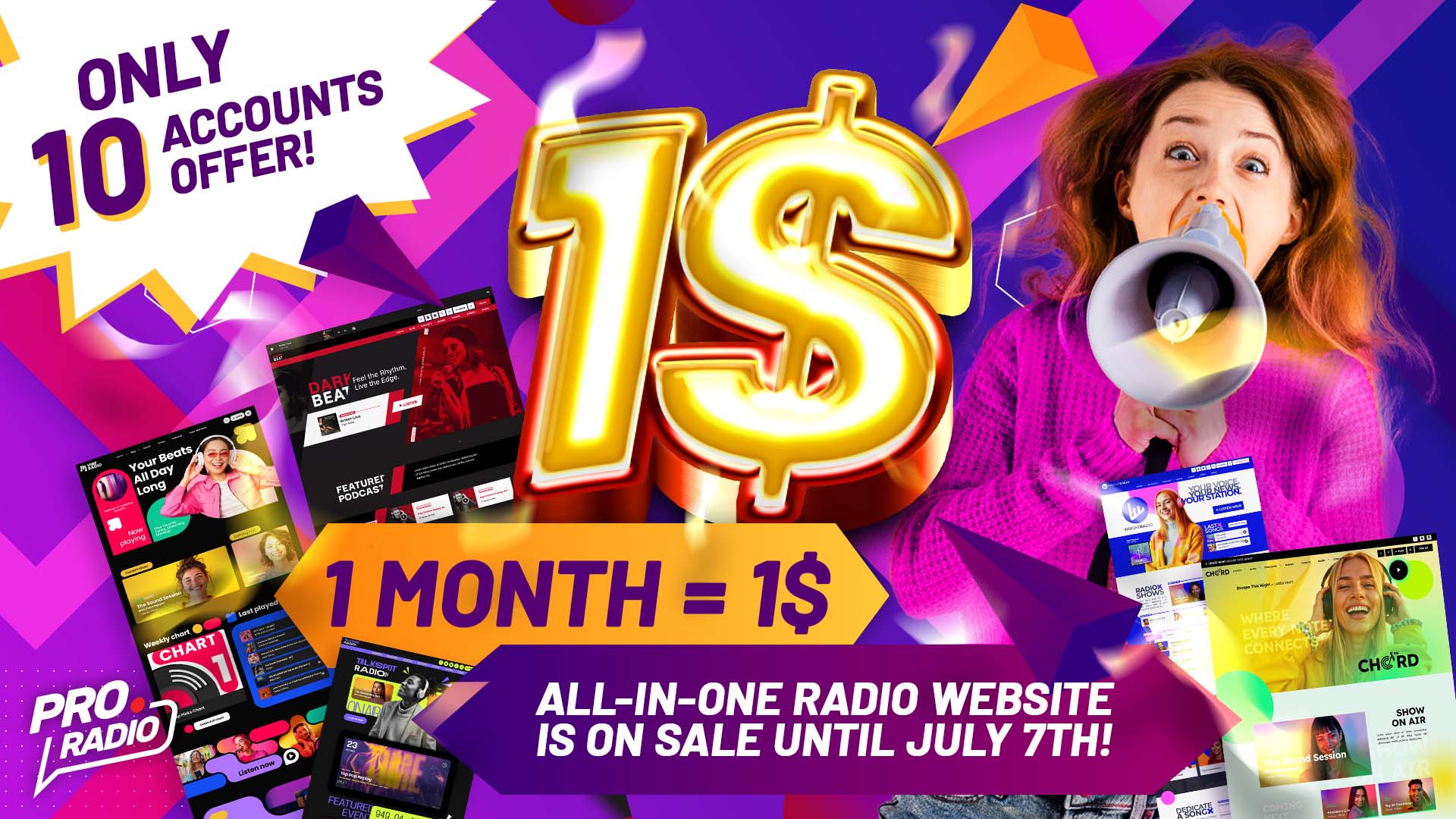 Get the full Pro Radio experience for just $1! Yes, you read that right. This week, we’re offering our All-in-One Radio Website FULL packages for only $1 to the first 10 lucky radio stations.