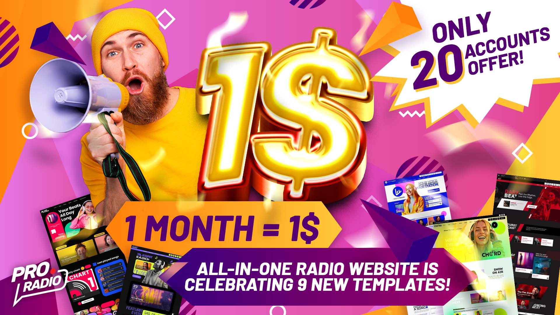 Get your first month for ONLY 1$ on ANY of our packages, including Hosting + Pro Radio pre-installed!