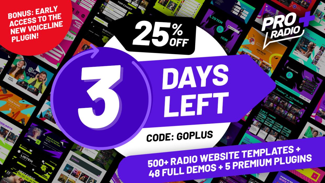 We originally planned to close this 25% OFF promotion on March 22, but with Pro Radio 9.0 launching on March 31st, we decided to turn it into a bonus surprise. The new release will introduce Voiceline (SEE DEMO), a powerful new feature that will be included with Pro Radio Plus, and we want more users to have the chance to join before launch and get access early. For this reason, the promotion has been extended until March 31. Build Your Radio Website with More Tools, More Templates, and Less Work Looking for a radio WordPress theme that gives you more than just a design? Pro Radio Plus gives you a complete radio website builder with premium plugins, a huge library of Elementor templates, ongoing updates, and expert support in one subscription. From March 13 to March 31, you can get […]