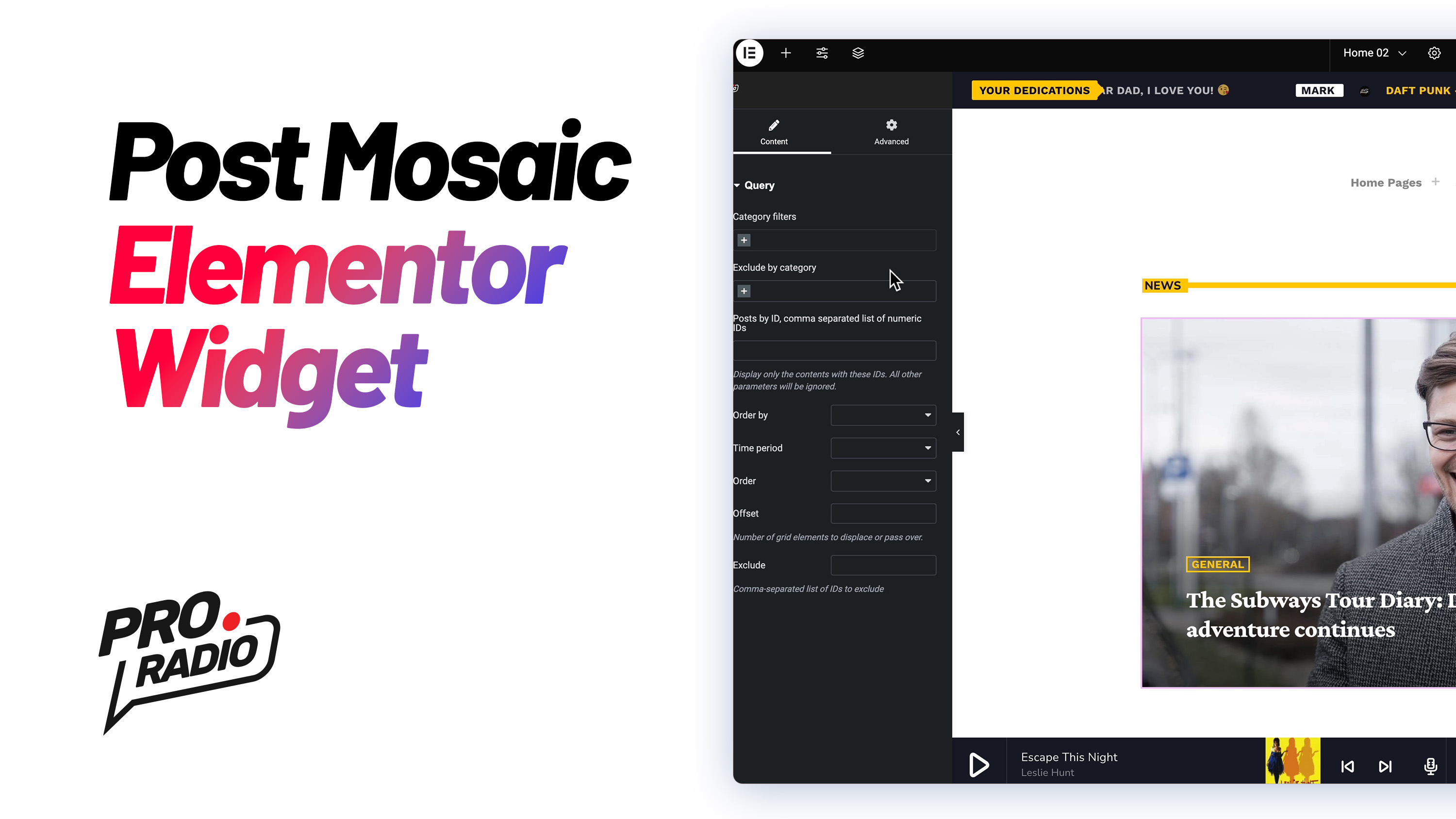 By following these steps, you can create an eye-catching, magazine-style page that highlights your most relevant content without duplication. The Post Mosaic widget is incredibly flexible, making it easy to customize and showcase your radio station’s latest updates, features, and events.