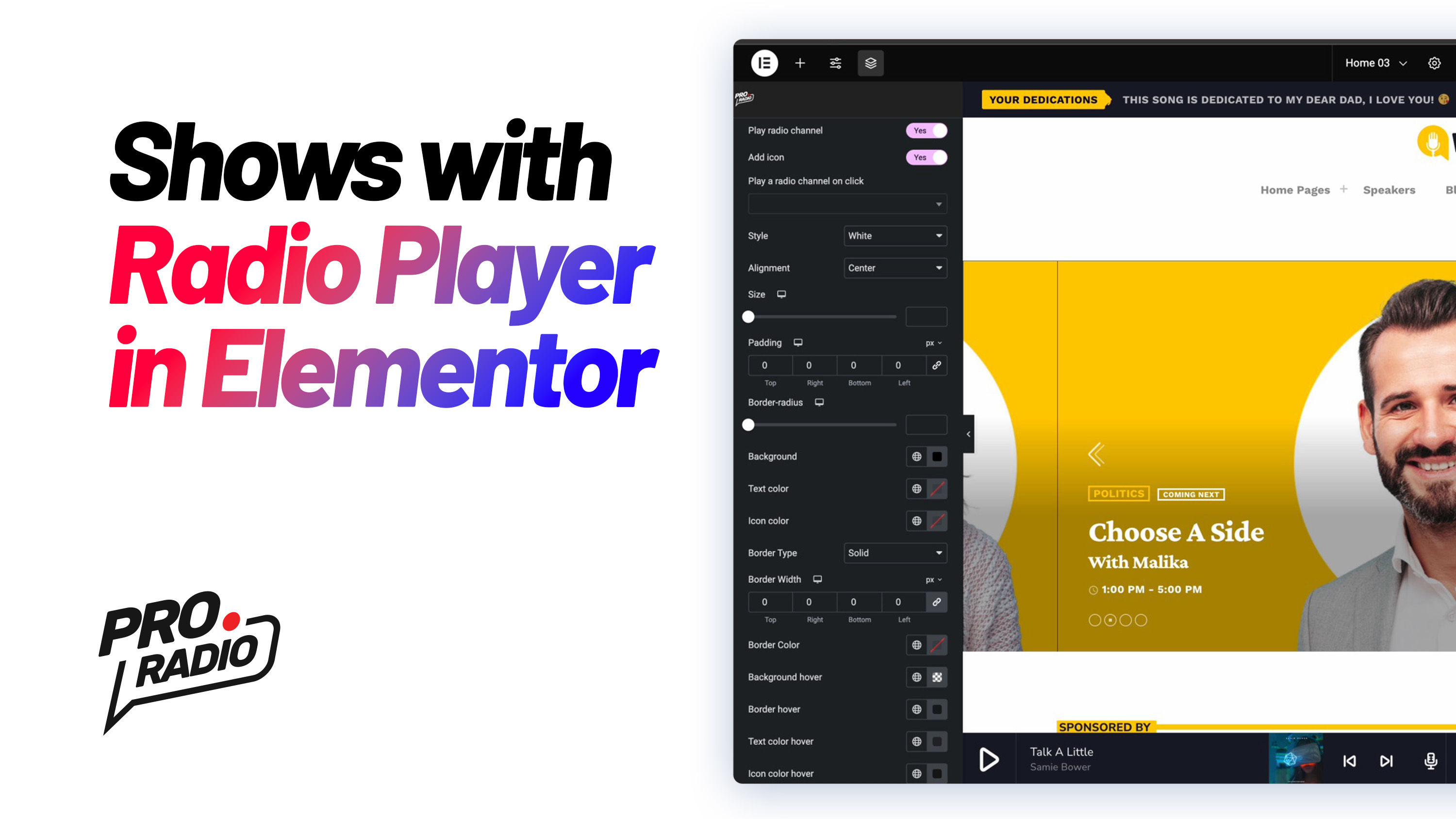 Welcome to this tutorial for the Pro Radio WordPress theme! In this guide, we’ll show you how to use Elementor to create a stunning radio station header that includes an Upcoming Shows slideshow and a Custom Music Player. This design is based on one of our demo templates and features a clean, modern layout with two columns: one for the player and one for the slideshow. Let’s get started!