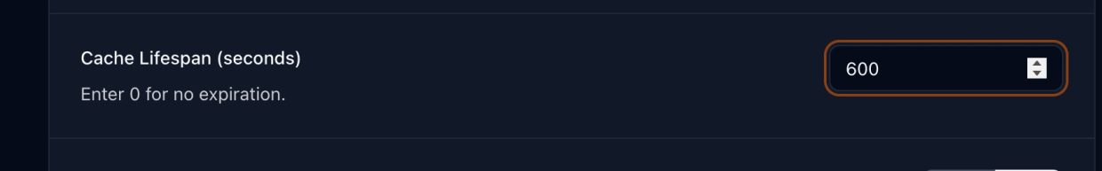 Now in Cache Lifespan, set 600. This is the maximum time the site can display outdated content, so you don’t want to show the previous radio show for more than 5 minutes. For a radio station is better a smaller time.