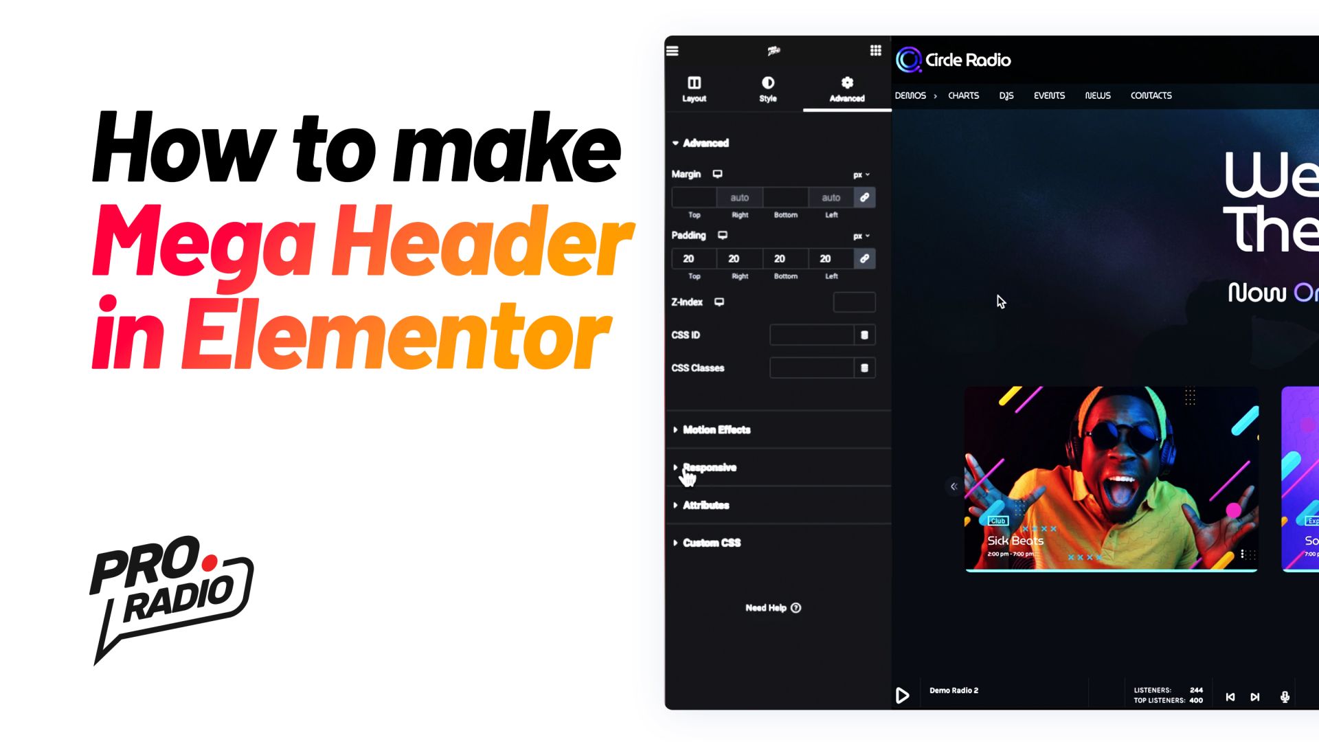 We recently introduced a new feature in Pro Radio WordPress Theme, called Mega Header. Similarly to the Mega Footer, this option allows to replace the default header with a custom menu section built entirely with Elementor.